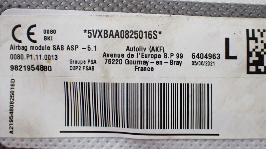 Opel Corsa F, Peugeot 2008 II bal ülés légzsák 9821954880